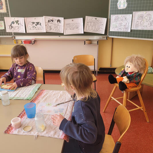 Im Rahmen des Milchprojekts hatten die Schüler:innen der Klassen 1 und 3 die Gelegenheit, sich intensiv mit dem Thema Milch und Milchprodukte auseinanderzusetzen. Besonders beeindruckend war das hohe Vorwissen der Kinder, das in angeregten Diskussionen zum Ausdruck kam.